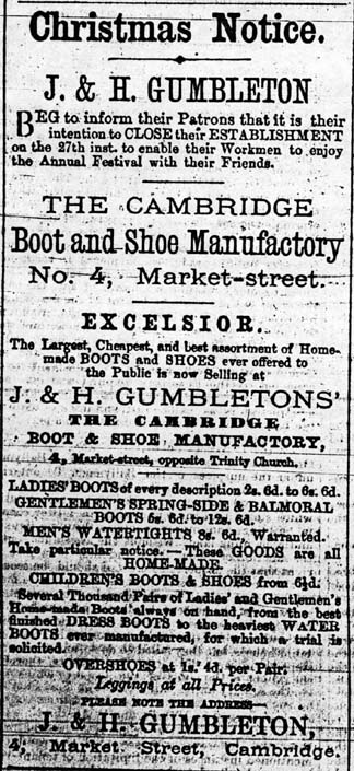 Newspapers and journals: Christmas notice for J&H Gumbleton, 1869