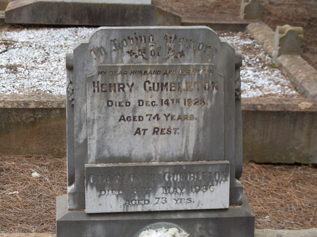 Monumental inscriptions: Grave of Henry Gumbleton, 1923
