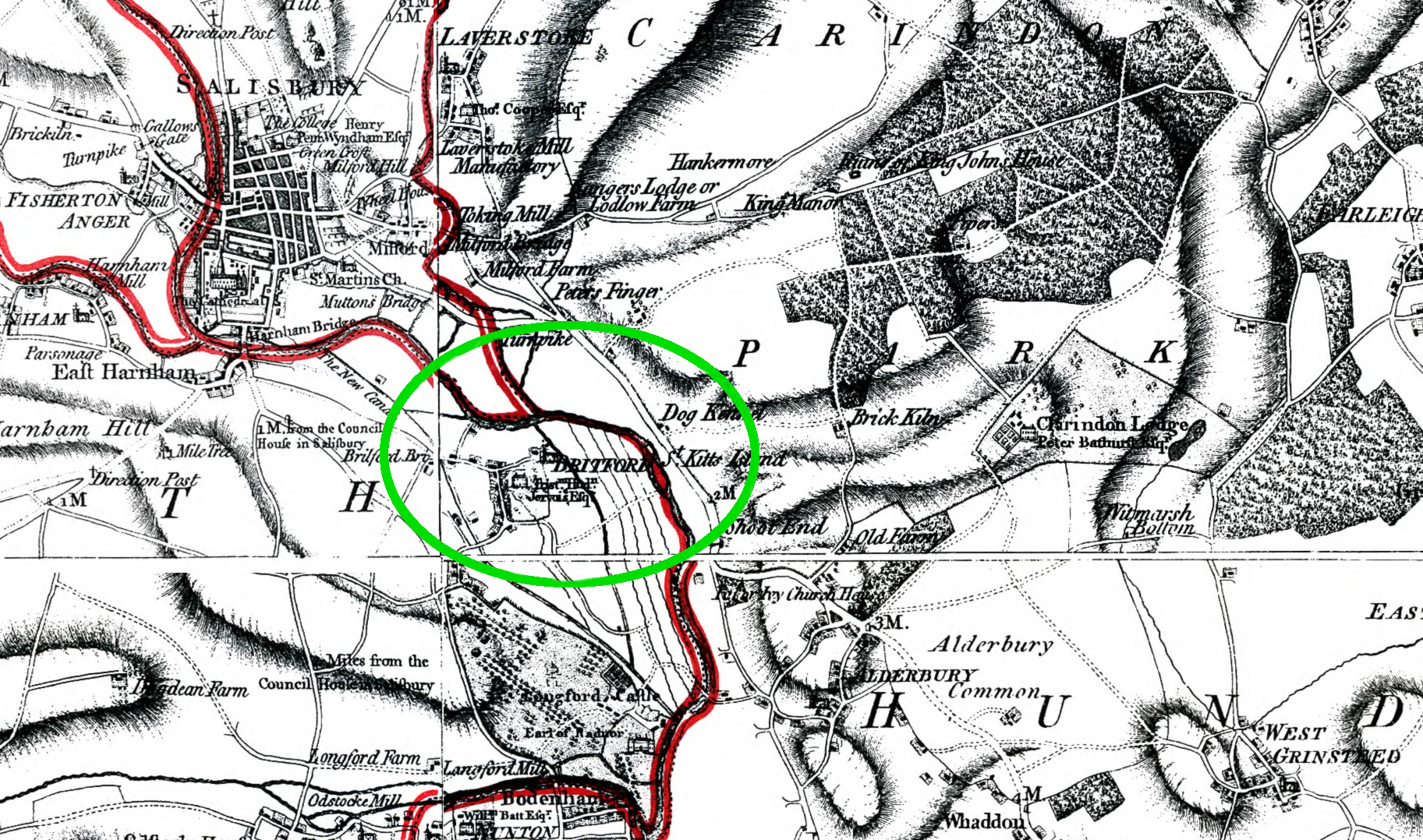 Britford (or Burford) is a small village, on the River Avon, about 2 miles south-east of Salisbury, in Wiltshire, England. In 1851 it had 938 inhabitants.