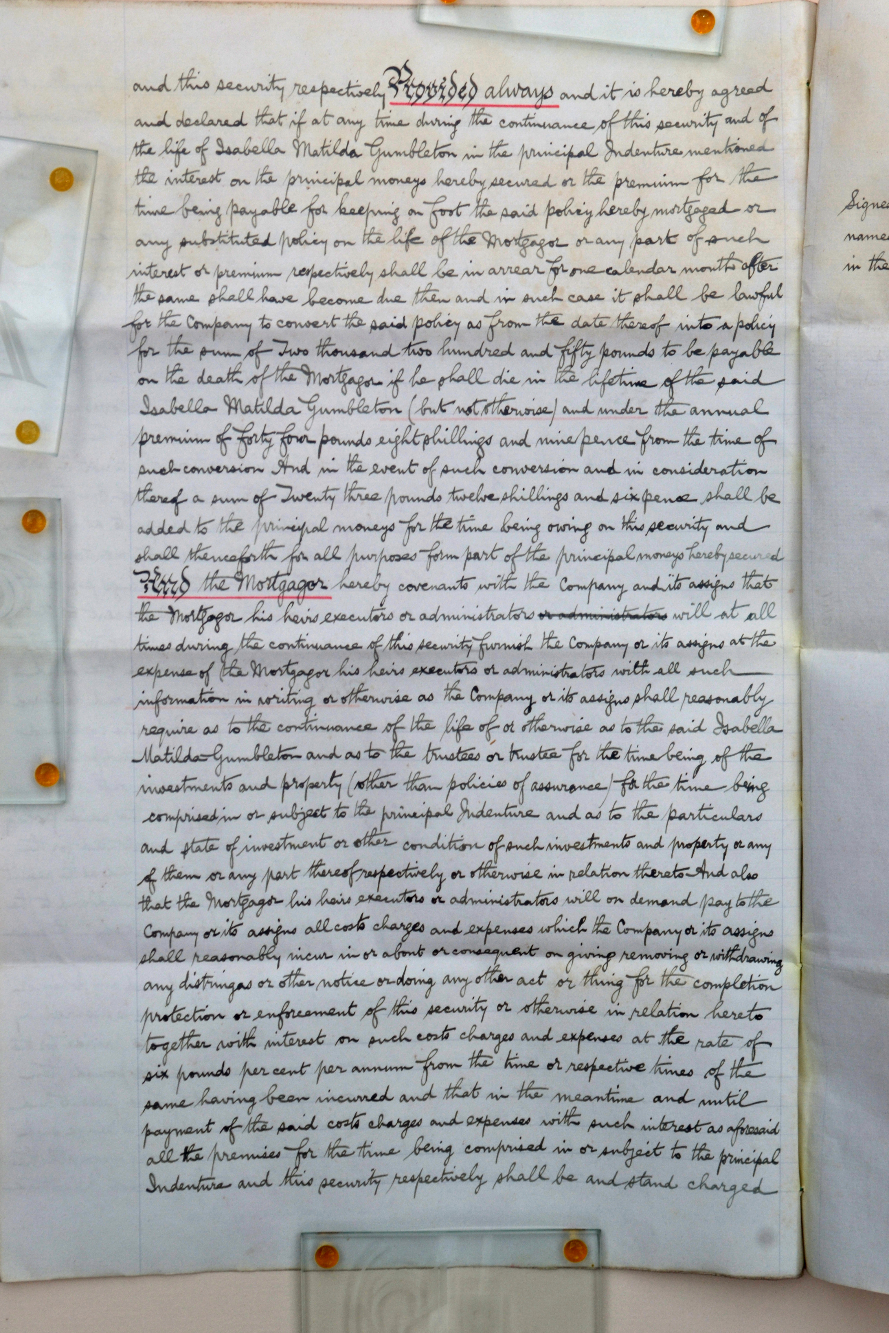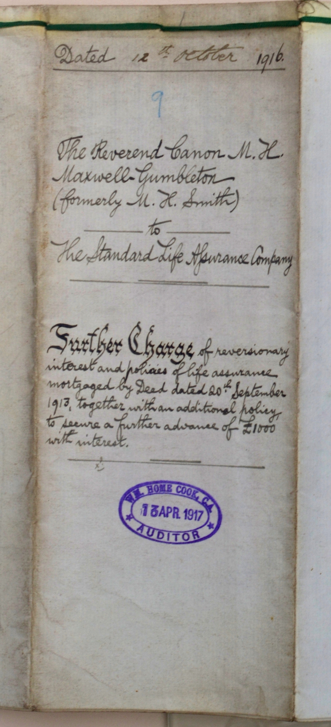 Maxwell-Gumbleton papers: Advance of money from life assurance policy