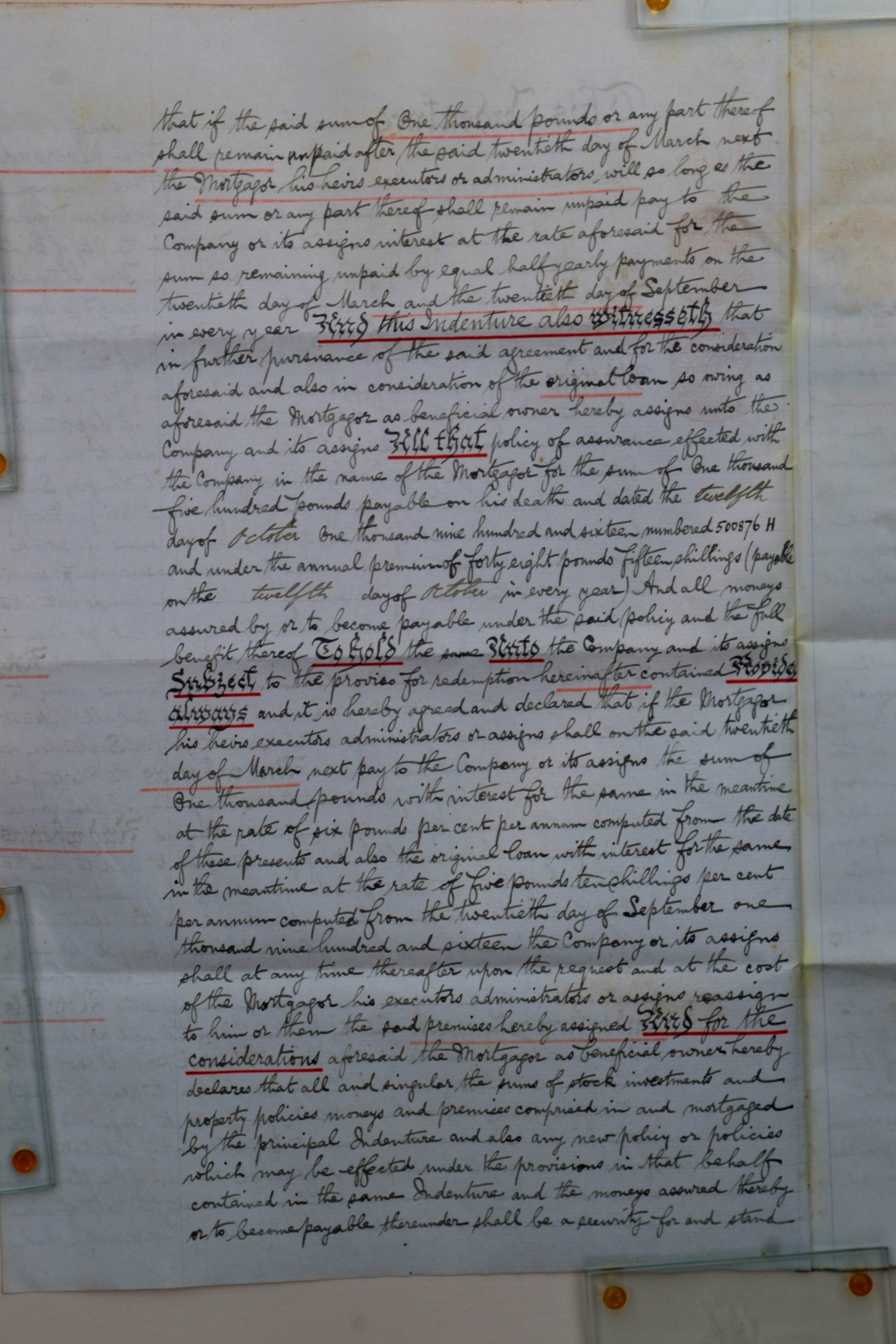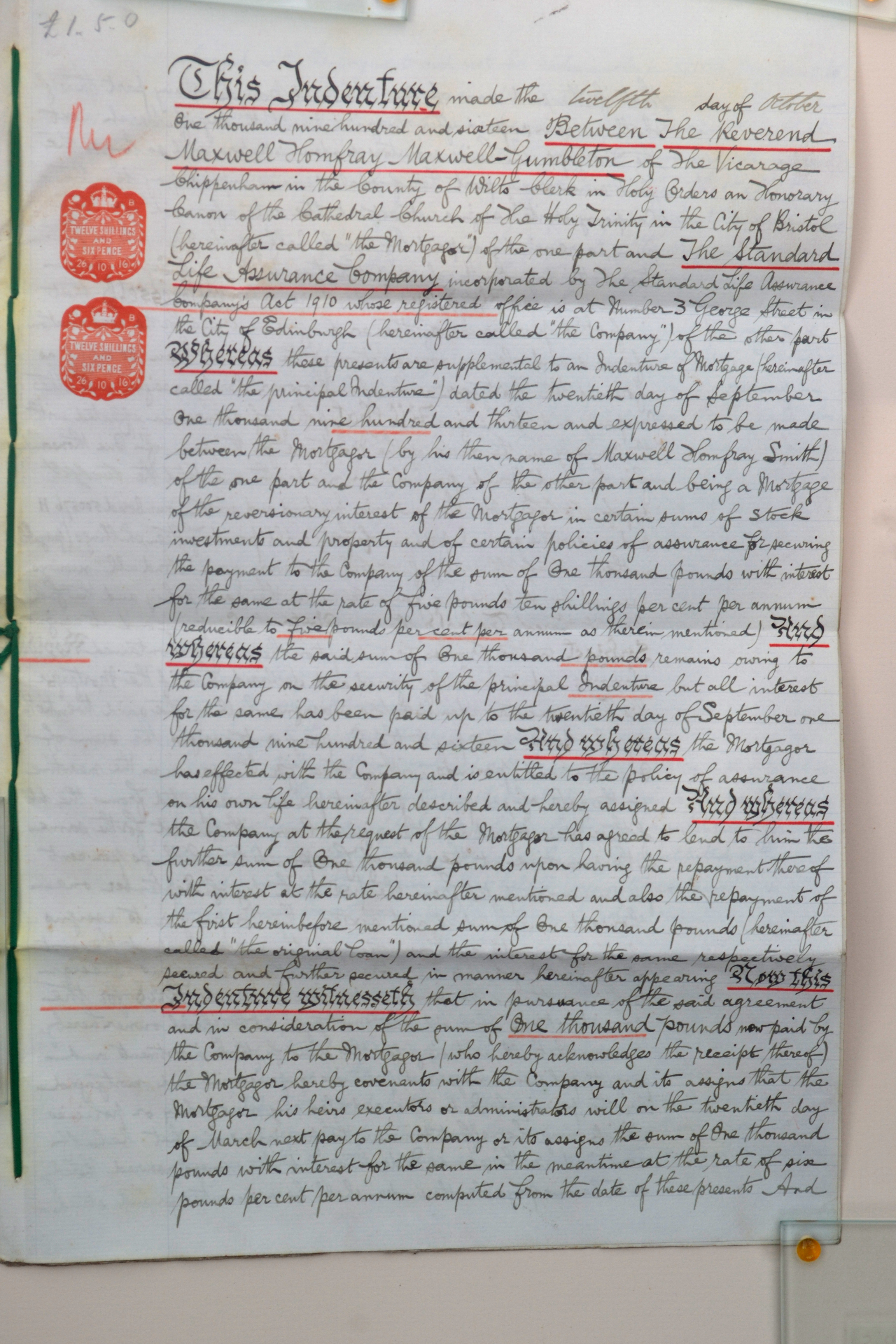 Further charge of reversionary interest and policies of life assurance mortgaged by Deed dated 20th Sep 1913, together with an additional policy to secure a further advance of £1000 with interest.
